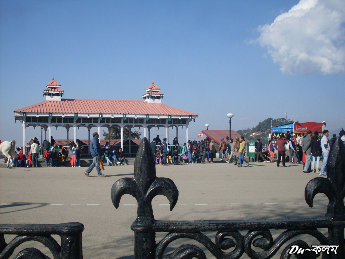 বরফ পড়লেই রিড্‌জ ঢেকে যায় বরফে। আমরা আসার কয়েকদিন আগেই শিমলায় হয়ে গেছে প্রচন্ড তুষারপাত। তারই কিছু চিহ্ন রয়ে গেছে এখানে ওখানে। রিড্‌জ থেকে গ্রীলের ফাঁক দিয়ে নিচে উঁকি মারতেই দেখতে পেলাম নিচে জমে থাকা ময়লা বরফ। লকড়ি বাজারেও রয়ে গেছে সেই বরফের চিহ্ন – তারই ওপর চট চাপা দিয়ে চলছে বিকিকিনি। এখন অবশ্য আকাশ পরিষ্কার নীল, চারিদিক রোদে ঝল্‌মলে।